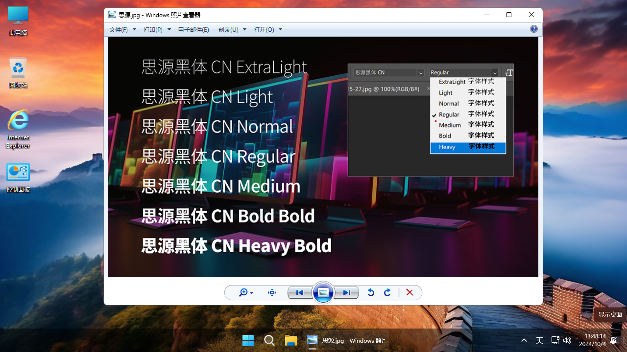 #新增字体 思源黑体 CN Regular、思源黑体 CN Normal、思源黑体 CN Medium、思源黑体 CN Light 、思源黑体 CN Heavy Bold、思源黑体 CN ExtraLight 、思源黑体 CN Bold Bold ,在PS中选择一款字体即可得到7种粗细不同的样式。